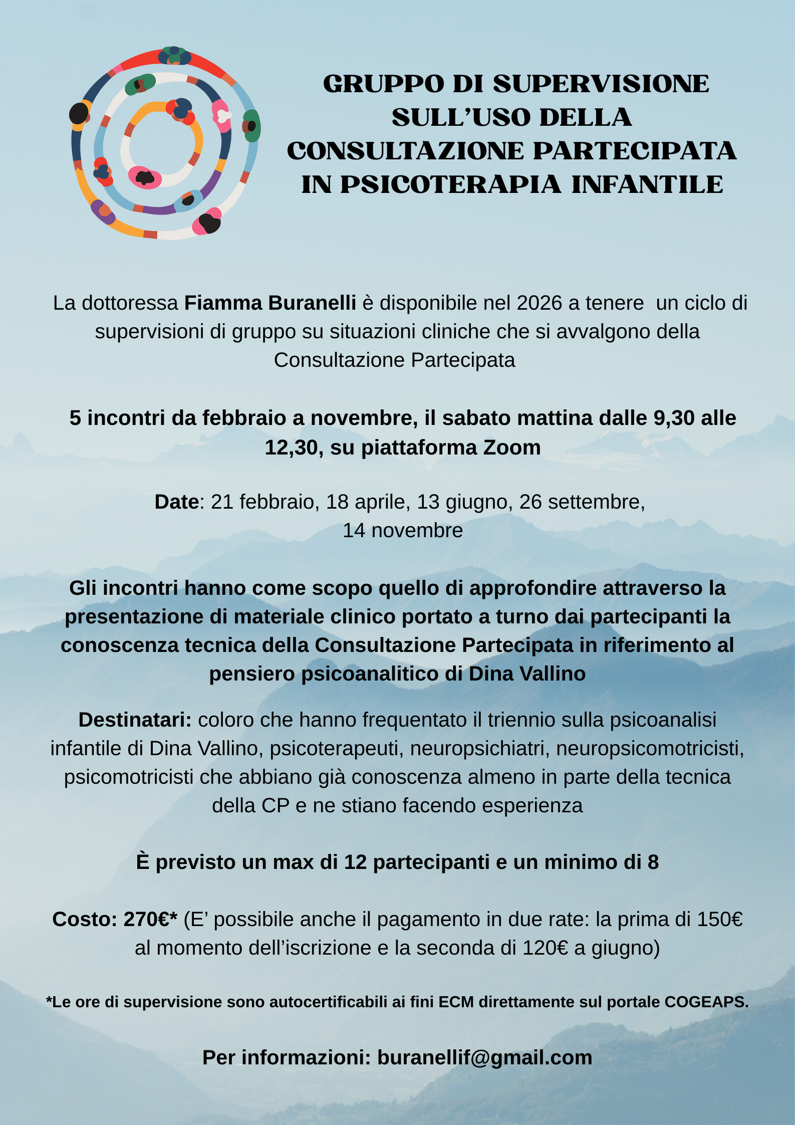 Gruppo di supervisione sull’uso della Consultazione Partecipata in Psicoterapia infantile 30 nov Scritto da Associazione Dina Vallino Scheda di iscrizione Associazione Dina Vallino